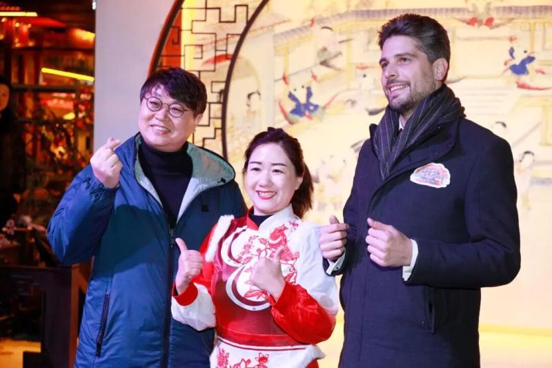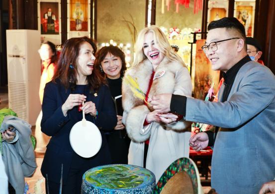 驻华使节一行到访天津古文化街,大红灯笼高高挂起,年味儿扑面而来。他们观摩泥人张泥塑制作技艺,欣赏含灯大鼓、天津快板等非遗曲艺表演,指尖轻抚百年非遗的匠心传承。