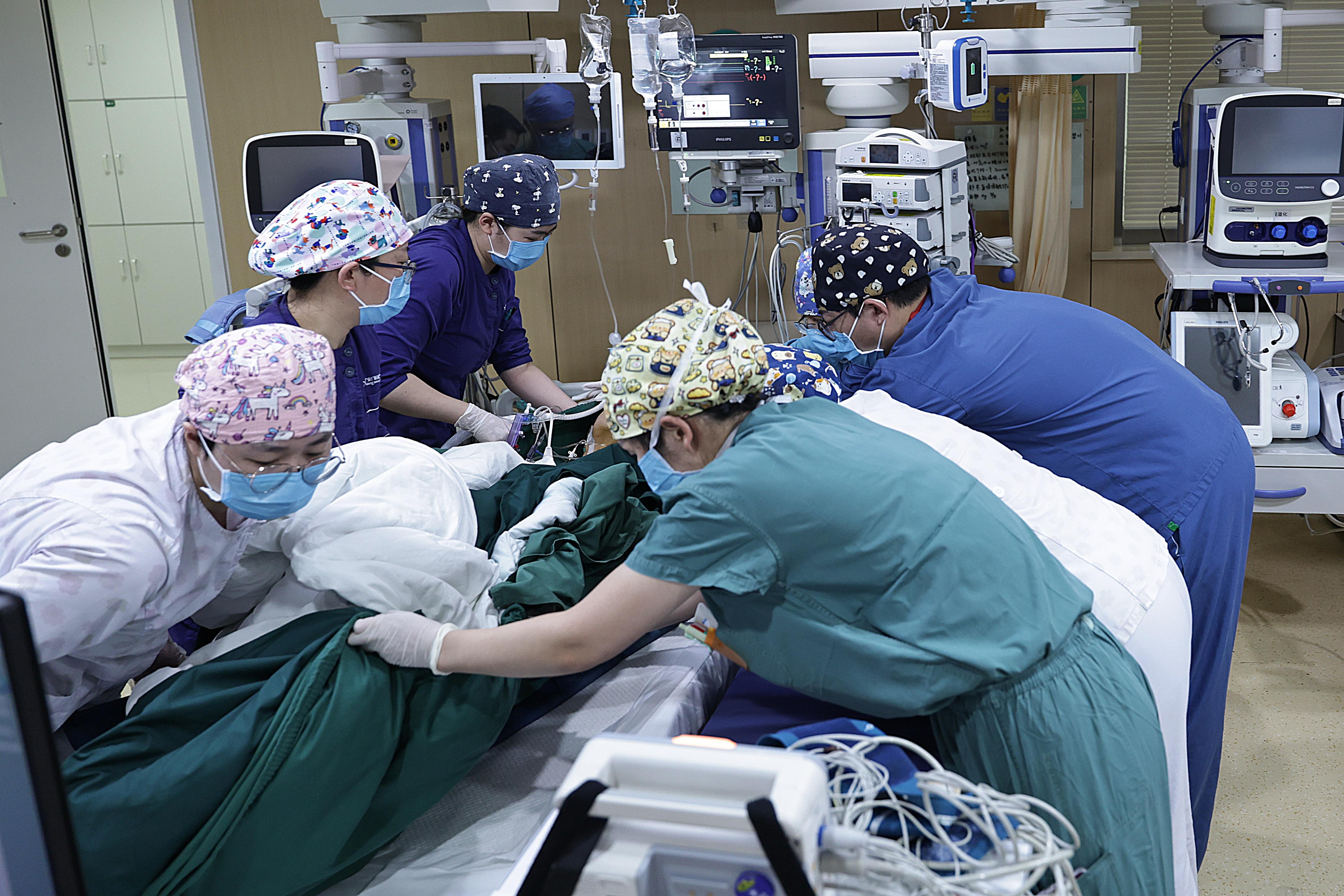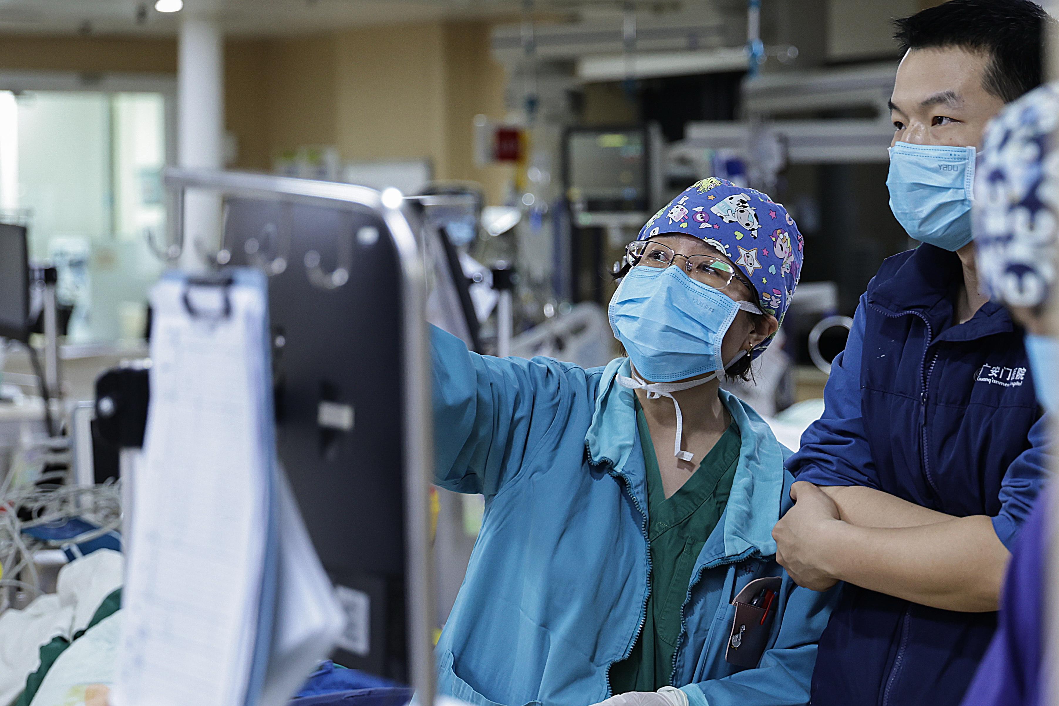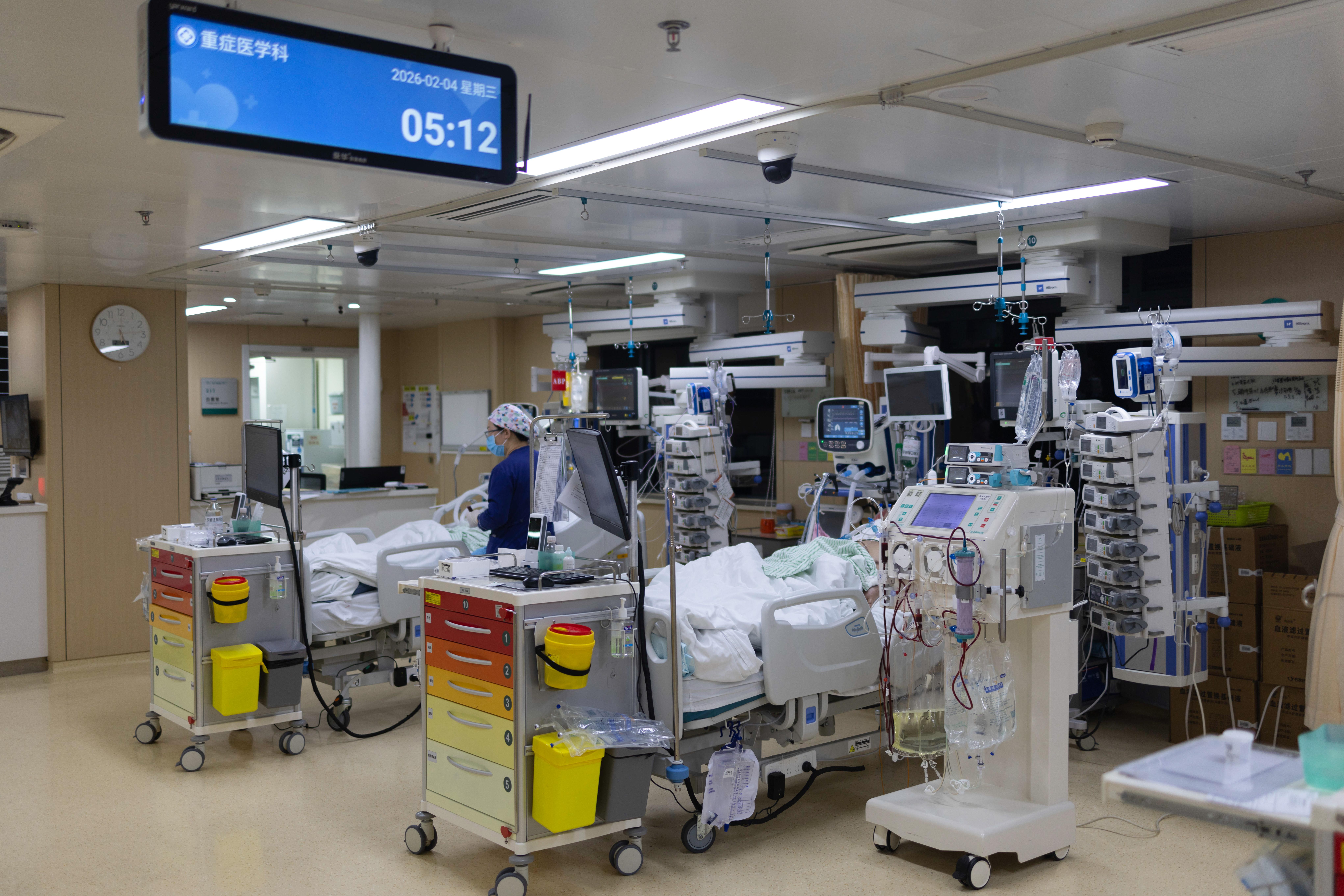 2月4日3时许,重症监护室值班护士在接收术后患者。