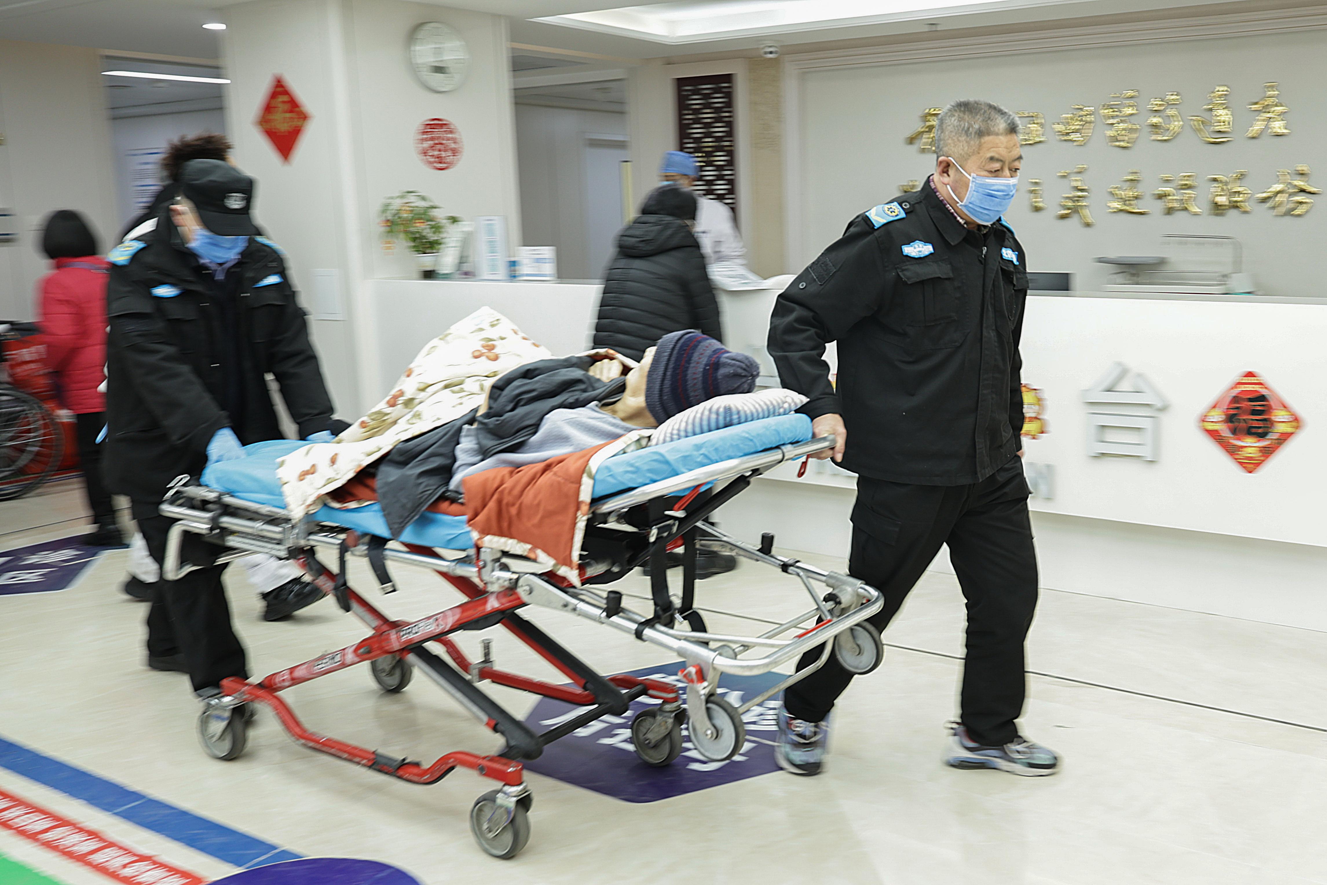 2月4日2时许,医护人员将一名刚做完手术的病人转移到重症监护病房。
