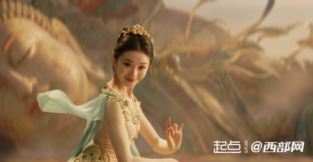 XR技术让时空“融”起来——由青年演员刘浩存领衔的舞蹈《千年一顾》构建了“现代—历史”双平行虚拟时空,以镜像化高难度肢体语言,在虚实交错间演绎敦煌石窟光影流转之美。这种“传统艺术+前沿科技”的破圈融合,既保留了舞蹈作品的艺术深度,又以沉浸式视觉奇观实现当代审美转换,让年轻观众在沉浸式体验中感知传统文化魅力。