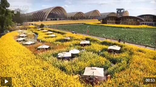 在岷江支流,油菜花海与秧田相间,成为踏青好去处。花田中搭建起多种消费场景,激发消费活力,促进城乡融合,让种植户和周边社区居民受益。